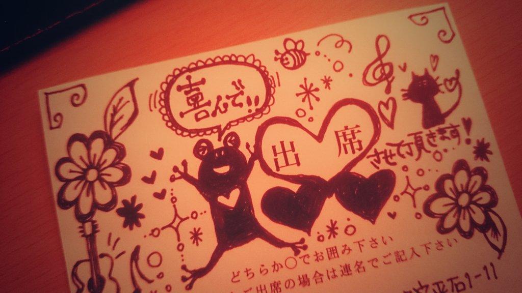 Web友達の招待状の返信のやつでイラストで文字消すのやってみたけどなんかゴチャってなった。 こういう模様のやつって難しいよねwww@ Ry0kucha7131 お友達から結婚式の招待状が来Web結婚式の招待状が届いたら、せっかくなら 返信イラストを書いて相手のお祝いの気持ちを伝えたい ですよね! 最近では返信はがきにイラストを書いたり刺繍を入れたりシールを貼ったり